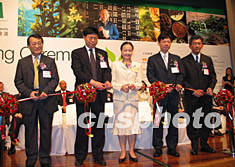 為推動香港發(fā)展成國際化中醫(yī)藥研究及貿易中心,貿發(fā)局首次辦“國際現(xiàn)代化中醫(yī)藥及健康產(chǎn)品展覽暨會議”。圖為貿發(fā)局署理行政總裁黎黃靄玲(中)于十四日為開幕式剪彩。作者:裘之越