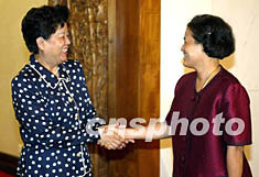 圖:中國國務(wù)委員陳至立會見泰國公主詩琳通