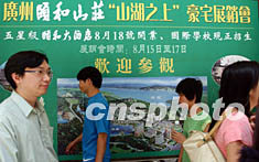 時下,香港經(jīng)濟(jì)復(fù)蘇初現(xiàn)端倪,廣州地產(chǎn)商不失時機(jī),紛至沓來香港推銷,以爭取香港業(yè)主。圖為廣州一豪宅在香港鬧市區(qū)展出巨幅廣告吸引路人。作者:潘索菲