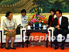 全國人大常委會(huì)委員長吳邦國十五日在北京會(huì)見泰國公主詩琳通。中新社記者:滿會(huì)喬