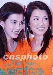 香港無(wú)線(xiàn)電視藝員前港姐林敏俐【右】、左慧琪,8月18日在《美麗在望》電視劇宣傳活動(dòng)時(shí)惺惺相惜。
