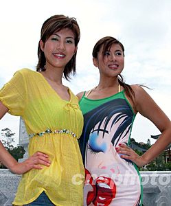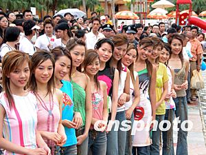 八月十七日,十二位二00三年度“準香港小姐”在廣東新會溫泉谷進行親善訪問活動,當?shù)孛癖娂娂娳s來,一睹她們的靚麗風采。中新社記者:劉衛(wèi)勇