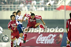2003中國女足南北明星爭霸賽八月十七日晚在北京先農(nóng)壇體育場進(jìn)行,經(jīng)過八十分鐘的全場較量,最終北方隊(duì)?wèi){借韓端的帽子戲法最終以4:1戰(zhàn)勝南方隊(duì)獲得本屆中國女足南北明星爭霸賽的冠軍。中新社記者:盛佳鵬