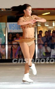 香港迪斯尼樂園邀請(qǐng)奧林匹克花樣滑冰好手關(guān)穎珊到港宣傳,8月18日在太古城冰上皇宮表演精湛技藝,為來港旅客及香港迪斯尼樂園工程打氣。中新社記者:洪少葵