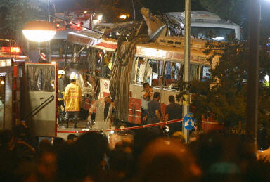 據(jù)當(dāng)?shù)鼐浇榻B,爆炸發(fā)生在當(dāng)?shù)貢r(shí)間晚上9時(shí)左右,爆炸地點(diǎn)在東、西耶路撒冷的分界線附近,遭遇襲擊的是一輛從耶路撒冷老城開(kāi)往一正統(tǒng)猶太人社區(qū)的19路公共汽車(chē)。由于爆炸發(fā)生在滿載乘客的汽車(chē)中部,所以傷亡慘重。這是耶路撒冷最近7年來(lái)發(fā)生的最為嚴(yán)重的自殺性爆炸事件。