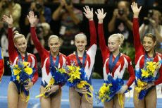 中國(guó)隊(duì)最后一項(xiàng)是相對(duì)較弱的項(xiàng)目自由操。首先出場(chǎng)的美國(guó)隊(duì)表現(xiàn)出色,三名出場(chǎng)的選手發(fā)揮越來越好,總分達(dá)到112.573分,實(shí)際上已經(jīng)提前把冠軍攬入囊中。中國(guó)隊(duì)選手接連出現(xiàn)了一些失誤,前兩名選手都沒有得到9分以上,最終只能以110.259分的總成績(jī)名列第四。羅馬尼亞隊(duì)獲得第二。澳大利亞在最后一個(gè)項(xiàng)目中發(fā)揮出色,奪取第三名。