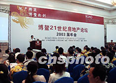 博鰲二十一世紀(jì)房地產(chǎn)論壇二00三屆年會二十三日在海南博鰲隆重開幕,來自全國各地的房地產(chǎn)公司老總出席,論壇主題為“金融緊縮下的中國房地產(chǎn)。作者:莫成雄