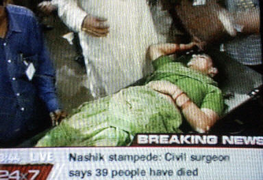 克里帕什安卡稱(chēng),數(shù)千名朝圣者齊聚馬哈拉什特拉邦納什科鎮(zhèn),按照慣例他們將在附近的哥達(dá)瓦里河進(jìn)行一種具有宗教色彩的“沐浴”,當(dāng)大量人群沖進(jìn)當(dāng)?shù)鬲M窄的街道向河岸跑時(shí),發(fā)生了這一幕慘劇。