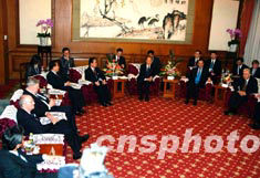 各方代表團(tuán)進(jìn)入六號(hào)樓后稍作休息,于七點(diǎn)二十五分左右前往會(huì)見(jiàn)廳。在那里,笑容可掬的中國(guó)外交部部長(zhǎng)李肇星以及中方代表團(tuán)團(tuán)長(zhǎng)、副外長(zhǎng)王毅,已經(jīng)站在門內(nèi)迎候他們的到來(lái)。