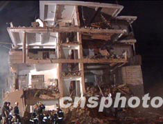 26日晚約10時30分,福建閩侯上街沙堤一鞭炮廠發(fā)生劇烈爆炸。截至28日,死亡人數(shù)已升至22人,傷者40余人。圖為一被炸毀的居民房。中新社 圖