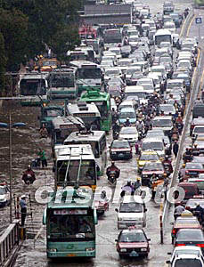 “杜鵑”臺風(fēng)給廣州帶來了狂風(fēng)暴雨,不少地方出現(xiàn)水淹現(xiàn)象,造成很多路段嚴重塞車。作者:梁永強