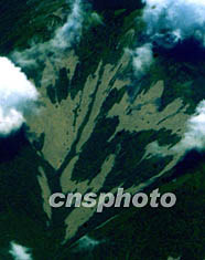 陜西省八月下旬連續(xù)降雨造成嚴重的山體滑坡和洪水災害。圖為秦嶺山區(qū)的一處滑坡。中新社記者:賈國榮