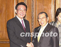 全國人大常委會委員長吳邦國五日上午在東京與日本眾議院議長綿貫民輔就雙方關心的問題進行了坦率深入的交談。作者:王健