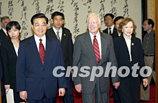卡特表示他很高興有機會再次訪華同胡主席結識,他回顧了一九七九年他同鄧小平副總理歷史性的會晤以及后來觀摩中國村民委員會成功進行選舉的經(jīng)歷,他還介紹了卡特中心在許多國家開展的工作。