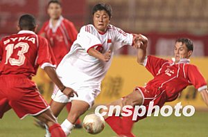 在下半場,中國隊雖積極進(jìn)攻,雖終未有建樹。而敘利亞隊也顯得體力不支。二比○的比分波瀾不驚地保持到終場。
