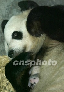 北京動物園8月24日出生的一只大熊貓幼崽,在初次做母親的“妞妞”十七天精心護(hù)養(yǎng)下度過最危險階段,如今小家伙已經(jīng)長出大熊貓?zhí)赜械暮谏珬l紋并不停地吱吱叫喊企圖脫離母親的懷抱。中新社記者:任晨鳴
