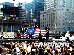 八點(diǎn)半,紐約市長(zhǎng)布隆博格宣布紀(jì)念儀式開始,隨后兩百名來自罹難者家庭的孩子輪流誦讀二千七百九十二名世貿(mào)罹難者名單,其中包括三十名警員和三百多名消防員。這期間像去年一樣,在兩座大樓被撞和倒塌的四個(gè)悲劇性時(shí)刻,全城鳴鐘、默哀。參加紀(jì)念儀式的罹難者家屬都聚集在主席臺(tái)前,他們手捧鮮花和親人的照片,當(dāng)聽到自己親人的名字時(shí),他們會(huì)高高舉起照片示意,然后前往廢墟最底層給親人獻(xiàn)花。整個(gè)紀(jì)念儀式持續(xù)近四個(gè)小時(shí)。今年紐約紀(jì)念活動(dòng)的主題是“重建”,除了哀傷還洋溢著團(tuán)結(jié)與希望。