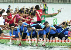 2003年亞太城市龍舟邀請(qǐng)賽決賽及小龍公開賽決賽十四日在澳門西彎人工湖舉行,參賽各隊(duì)競(jìng)爭(zhēng)激烈,盡顯巾幗不讓須眉之本色。中新社記者:李剛