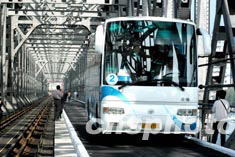 鴨綠江“中朝友誼橋”公路橋中方一側(cè)修復(fù)工程九月中旬竣工并恢復(fù)通車。該橋是中朝邊境主要陸路通道,修整后的公路橋面承重能力將由原來的十噸提升至二十噸。圖為滿載中國(guó)游客的大客車通過丹東鴨綠江大橋的情形。中新社記者:王麗南