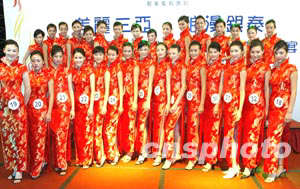 為期一周的第五十三屆世界小姐中國總決賽十五日在海南三亞拉開帷幕,參賽選手身著大紅旗袍集體亮相,展示具有中國傳統(tǒng)韻味的美麗形象。中新社記者:毛建軍