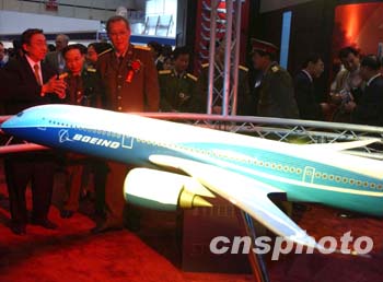 由波音民用飛機集團展出的波音7E7超效飛機是第一款具有遠程直飛能力的中型飛機,航速可與當今最快的寬體飛機波音747相當,最多可容納400名乘客。航空公司可利用它為不適合使用大型飛機的遠程航線提供不經(jīng)停服務(wù)。目前正處于研發(fā)階段,2005年投入生產(chǎn),2007年進行首次飛行認證。波音預(yù)計,在未來20年間,全球市場將需要2000到3000架波音7E7。