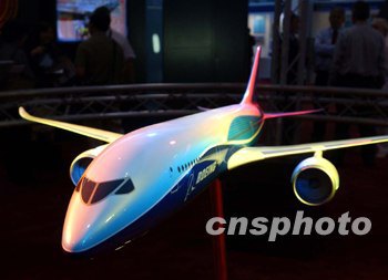 波音租用了若大的展位,重點(diǎn)展示了載客二百至二百五十人的新型波音7E7夢(mèng)想飛機(jī)的模型,該機(jī)以安靜的發(fā)動(dòng)機(jī)、可再循環(huán)使用的材料成為波音的“環(huán)保先鋒”。此外,該飛機(jī)具有比亞音速飛機(jī)更快的速度,體現(xiàn)了波音點(diǎn)到點(diǎn)的直飛理念。他們還放言,此飛機(jī)具有空客A380不可比擬的駕駛艙新技術(shù)。