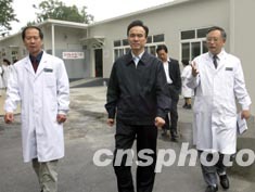 中共北京市委副書記龍新民(中),9月18日到北京協(xié)和醫(yī)院等醫(yī)療機構(gòu)檢查落實北京市嚴防SARS緊急預(yù)案落實情況。中新社記者:任晨鳴
