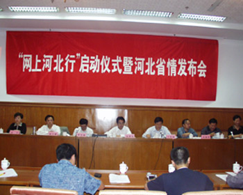 “網(wǎng)上河北行”啟動(dòng)儀式暨河北省情發(fā)布會(huì)由河北省政府新聞辦公室主任相金科主持。河北省委常委宣傳部長(zhǎng)張群生、河北省副省長(zhǎng)付雙建、國(guó)務(wù)院新聞辦網(wǎng)絡(luò)局局長(zhǎng)李伍峰等領(lǐng)導(dǎo)出席了會(huì)議。