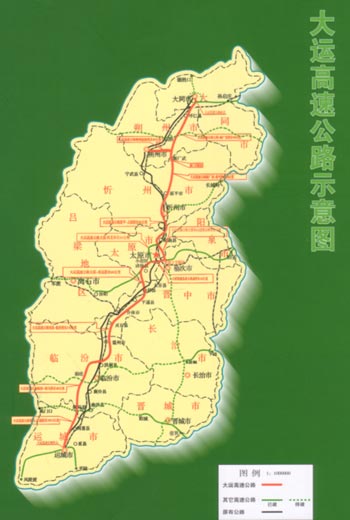 大運高速公路北起古城大同,南至黃河三角洲新興城市運城,縱貫山西南北,穿越山西8個市地31個縣市區(qū)132個鄉(xiāng)鎮(zhèn)495個行政村,全長666公里,雙向六車道,總投資222億元,是國家二連浩特至河口國道主干道線和臨汾至三亞重點公路的重要組成部分,是山西“三縱三橫”公路最重要的中軸快速通道。