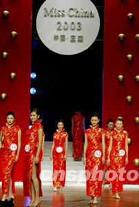 選手們身穿旗袍裝通過紅色宮門向世人演繹中國女性的美麗風(fēng)韻。中新社記者:毛建軍