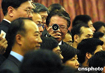 “第二屆世界華文傳媒論壇”九月二十二日在長沙開幕,加拿大新時代電視、新時代傳媒集團(tuán)總裁陳國雄出席會議時用小型攝像機拍攝大會盛況。中新社記者:王瑤