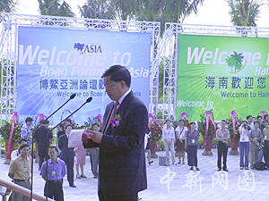 由中遠(yuǎn)集團(tuán)投資建設(shè)的博鰲亞洲論壇永久會(huì)址——博鰲亞洲論壇國(guó)際會(huì)議中心二十二日揭幕,博鰲亞洲論壇秘書長(zhǎng)龍永圖在揭幕典禮上致詞。中新社記者 關(guān)向東 攝
