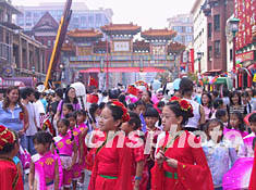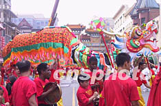 此次由大華盛頓地區(qū)一百多個華人社團聯(lián)合舉辦的中國文化節(jié),除了有中國文化工藝展覽和中華美食節(jié)外,最引人注目的是周日下午在唐人街舉行的盛大游行。醒獅起舞、大型花車、武術功夫、魔術雜技、民族盛裝、歌舞表演,吸引了數(shù)千華人、當?shù)厥忻窦坝慰。特別是廣東省僑辦贈送的一條長達七十米、需要三十四人共同舞動的巨龍,在唐人街上翻騰跳躍,把節(jié)日氣氛帶向高潮。