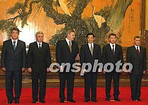 中新社北京九月二十三日電(記者 姜知然)中國國家主席胡錦濤二十三日下午在人民大會堂會見了來京出席上海合作組織總理會晤的哈薩克斯坦總理阿赫梅托夫、吉爾吉斯斯坦總理塔納耶夫、俄羅斯總理卡西亞諾夫、塔吉克斯坦總理阿基洛夫和烏茲別克斯坦總理蘇爾丹諾夫。