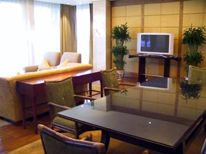 酒店每個房間均有獨(dú)立的更衣室,自動紅外照明感應(yīng),自動恒溫空調(diào),可以根據(jù)客人的習(xí)慣自動記憶亮度及溫度,柚木厚重的家俬與三十多頻道多語言衛(wèi)星電視、寬帶上網(wǎng)接口實(shí)現(xiàn)了傳統(tǒng)與時尚的統(tǒng)一。客房內(nèi)法式浴缸與臥室之間以軟簾相隔斷,拉開軟簾推開陽臺,就是南海咸濕滋潤的空氣,客人可以邊沐浴邊欣賞博鰲水天一色的美景。