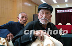 九月二十五日,河南鄭州,兩名花岡事件的河南籍受難者在等待花岡和平友好基金會(huì)發(fā)賠償金。從一九四四年起,共九百八十六名中國(guó)人被強(qiáng)擄到日本秋田縣花岡町做苦力,其中四百八十一名勞工命喪日本。自一九八九年起,經(jīng)過幸存者十余年的艱苦斗爭(zhēng),日方同意一次性賠償五億日元。目前找到四百六十四名花岡受難者中,河南籍30人。全部賠償工作將于今年十二月三十一日終止。作者:慎重