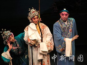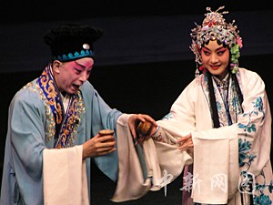 小青為白娘子和許仙(于魁智飾)當紅娘。中新社記者 劉雨生 攝