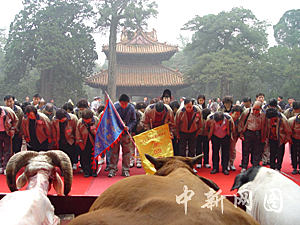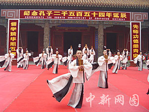 中新網(wǎng)曲阜9月28日電(記者 王魯平 毛公強)幽雅的古樂在空中回蕩,盛裝的少女在翩翩起舞,來自海內(nèi)外的東方文化崇拜者及孔子的后裔,今天上午在孔子故里曲阜孔廟大成殿前隆重舉行莊嚴肅穆的儀式,紀念孔子誕辰兩千五百五十四年。