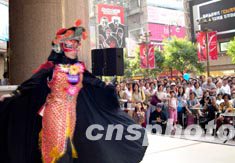 香港時(shí)代廣場(chǎng)10月1日舉辦文藝表演慶祝國(guó)慶節(jié),香港女藝人的“變臉”技藝,令觀眾大開(kāi)眼界。中新社記者:洪少葵