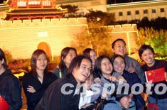 十月一日十國(guó)慶長(zhǎng)假第一天,當(dāng)晚有數(shù)萬(wàn)游客在北京天安門廣場(chǎng)觀看夜景。中新社記者:盛佳鵬