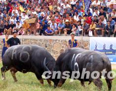貴州省凱里市在國慶黃金周舉辦的首屆東方斗牛大賽由康偉經(jīng)貿(mào)發(fā)展公司承辦,當?shù)卣畤L試以此促進振興旅游。中新社記者:宋吉河
