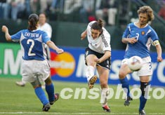 美國當?shù)貢r間10月2日,2003女足世界杯德國隊與俄羅斯隊爭奪四強席位。德國隊發(fā)揮了體能好速度快的優(yōu)勢,以7比1大勝俄羅斯隊,殺入四強。作者:劉占坤