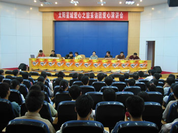 昨日,來自中國社會科學(xué)院的知名人文學(xué)者周永琴,應(yīng)太陽星城愛心之旅采訪團(tuán)地邀請,不辭遠(yuǎn)行趕赴合肥工業(yè)大學(xué),在輕松的氛圍中,為充滿愛心的大學(xué)生們進(jìn)行了一場聲情并茂的演講,不時引起一陣陣熱烈的掌聲。