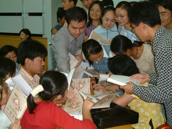 演講贏得了合工大的學(xué)生們的共鳴,據(jù)了解,參加演講的學(xué)生中有大部分是學(xué)校愛心活動的志愿者。來自該校材料系3年級的徐同學(xué)告訴記者,他的四位舍友都是扶殘助殘的志愿者:“我們開始見到殘疾人時不會回避,但心底里還是覺得他們與我們不同,有些距離,但是做了志愿者的工作后,我開始了解了他們真正的生活”。一旁來自計算機(jī)系的新生說:“雖然我還沒來得及參加助殘活動,但我知道,要讓殘疾人過的好些,我們應(yīng)該更努力些”。