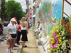 時隔一年,前來這里報道東盟系列峰會的本社記者踏訪爆炸案現(xiàn)場,追尋恐怖主義的罪惡,感受人們對和平的渴望。遠遠望去,在鱗次櫛比的商店旅館中間,有一片用木板和鐵柵欄圍起的空地,格外顯眼。當記者的采訪車剛剛停下,一位身材壯實的警察即走上前來,用不太流利的英語向記者介紹爆炸發(fā)生時的慘狀。