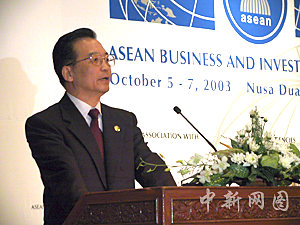 首屆東盟商業(yè)與投資峰會(huì)今天在巴厘島舉行,溫家寶出席會(huì)議并發(fā)表了題為《中國(guó)的發(fā)展和亞洲的振興》的演講。他表示,今年以來(lái),中國(guó)克服非典疫情的嚴(yán)重沖擊,國(guó)民經(jīng)濟(jì)保持了快速健康發(fā)展的良好局面。上半年國(guó)內(nèi)生產(chǎn)總值增長(zhǎng)百分之八點(diǎn)二。
