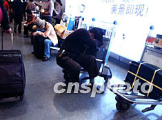 北京首都國際機場連日涌現(xiàn)十月黃金假期千千萬萬返回的乘客,不少人疲憊不堪,準備轉(zhuǎn)乘飛機回家。