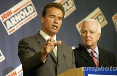 中新社洛杉磯十月八日電 美西時(shí)間十月七日深夜,毫無(wú)從政經(jīng)驗(yàn)的好萊塢影星阿諾·施瓦辛格當(dāng)選為加州州長(zhǎng)。投票結(jié)果明朗后,他發(fā)表演講,稱自己一無(wú)所有來(lái)到加州,加州卻給了他一切;最重要的是,給了他信任。