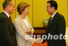 中新社北京十月十日電(記者張朔)中國全國人大常委會委員長吳邦國今天在北京人民大會堂會見愛爾蘭總統(tǒng)麥卡利斯,就進(jìn)一步全面推動中愛兩國的交流與合作進(jìn)行了友好交談。吳邦國表示,中國新一屆領(lǐng)導(dǎo)集體重視發(fā)展同歐盟、同愛爾蘭的全面合作。