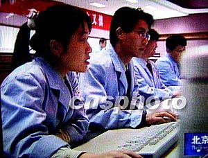 據(jù)北京電視黃金時(shí)段新聞報(bào)道,位于北京的中國航天指揮控制中心,日前進(jìn)行了神舟五號(hào)載人飛船的最后一次合成演練,準(zhǔn)備工作一切正常。中新社記者:賈國榮